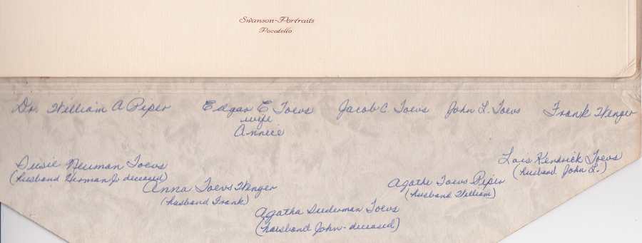The two scans below contain the identities of the Toevs siblings and in-laws and their mother, Agatha Suderman Toevs, in the excellent handwriting of my own mother, Florence May Toevs Bartsch.